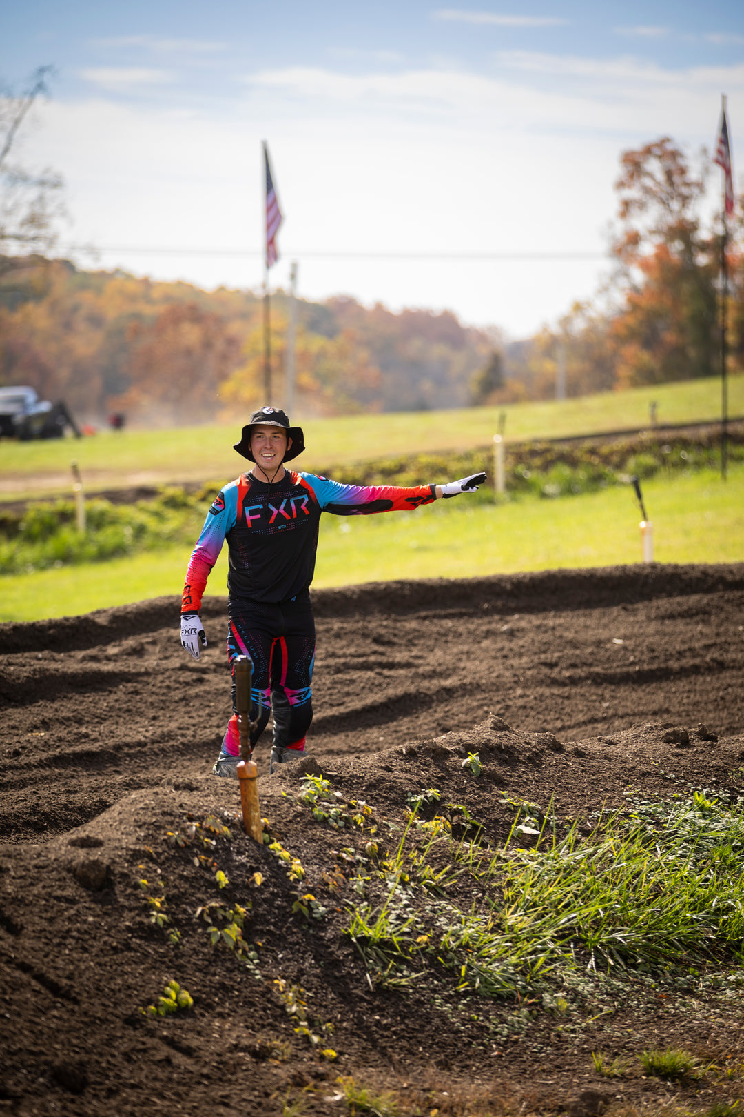I started riding dirtbikes when I was 4 years old. By the time I was 8, I was racing Loretta Lynn’s and other amateur nationals. Not long after, I met Aj at a track in Connecticut. I began really focusing on technique and how to adapt to changing track conditions and the importance of consistency. I realized I put everything else normal aside to practice or race, and from a young age I’ve always been dedicated to this craft. I spent time at training facilities and continued to compete at Loretta’s Lynn’s and eventually race professionally in Canada and in the US. In 2024 I had a shoulder injury which left me with a lot of extra time, and I found myself coaching and training riders on my own. Not long after, conversation began to join the team. I have as much passion for coaching as I do riding and training myself, and I’m fortunate to be in the position to do so!