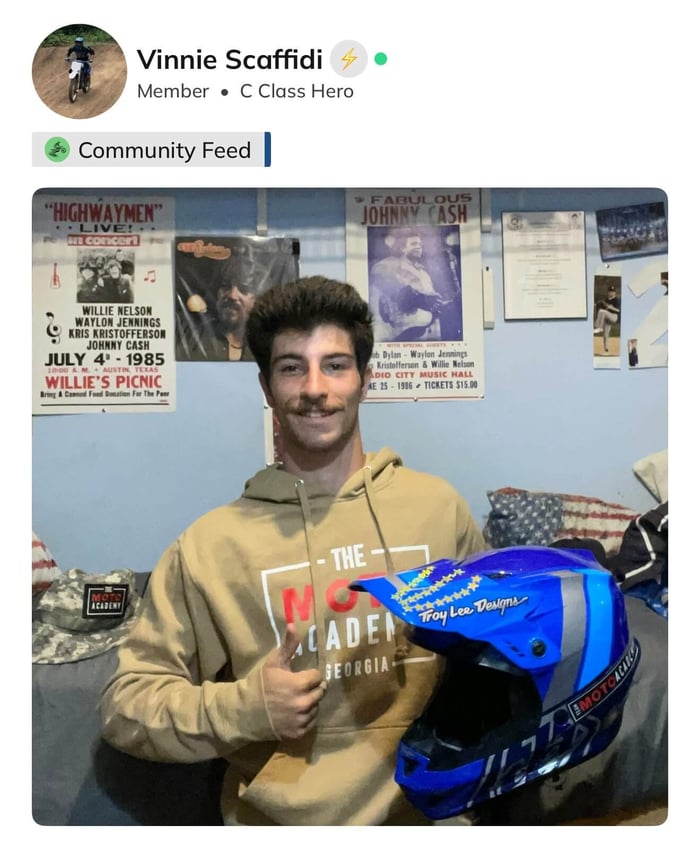 And while Vinnie’s mindset was powerful on its own, it was the people around him who helped bring it to life. Coaches who notice. Teammates who care—not teammates in the traditional sense, but riders he’d only ever met inside The Moto Academy App. And yet, the bond was real. They encouraged each other like old friends, even before they’d ever shared a track. That’s what makes this community different. It feels like home, even before you’ve arrived.