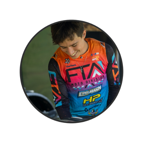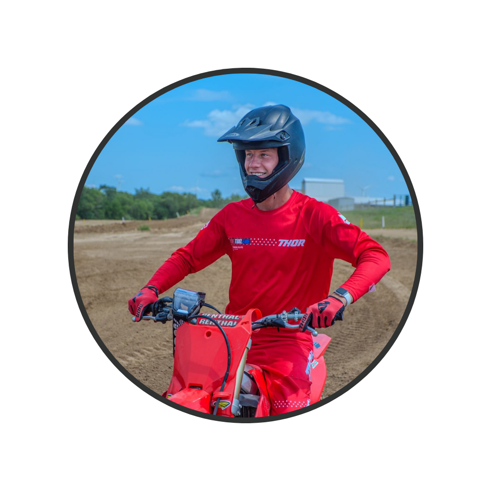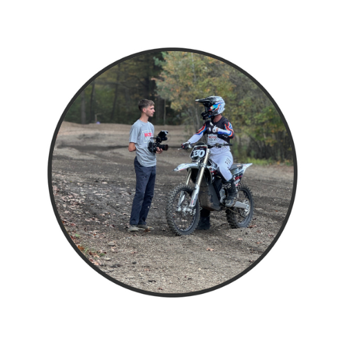 I started riding dirt bikes at 4 years old and began racing at Loretta Lynn’s and other amateur nationals by age 8. Shortly after meeting AJ at a track in Connecticut, I started focusing on technique, adapting to changing conditions, and developing consistency. From an early age, I put everything else aside to dedicate myself fully to riding, training extensively at facilities and eventually racing professionally in Canada and the U.S.